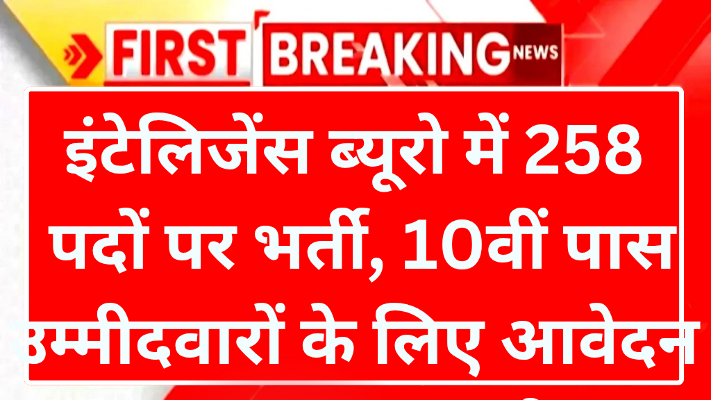 इंटेलिजेंस ब्यूरो में 258 पदों पर भर्ती, 10वीं पास उम्मीदवारों के लिए आवेदन शुरू 25 अक्टूबर से 16 नवंबर तक